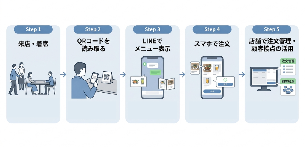 顧客は、店舗で提示されたQRコードをスマホで読み取るだけで、注文画面へアクセスできます。