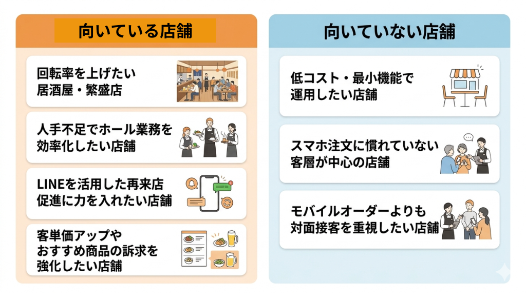 ダイニーモバイルオーダーが向いている店舗・向いていない店舗