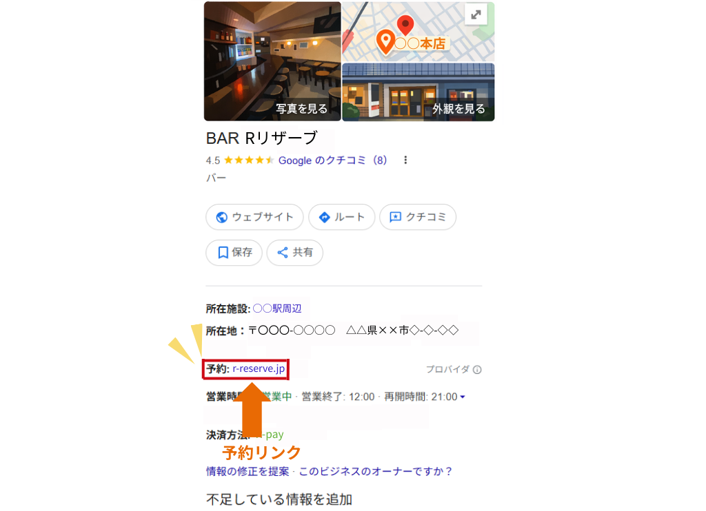 予約リンクが先に設定されている場合、 Google側が“リンクを優先表示”してしまい、予約ボタンが出ないケース があります。