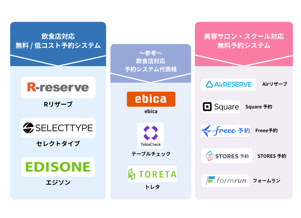 飲食店対応の無料/低コスト予約システム比較表