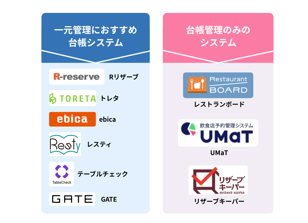 飲食店向けの主要な予約台帳システムを、機能・連携・店舗規模などの観点から比較しました。自店舗に合ったシステムを選定する際の参考にしてください。