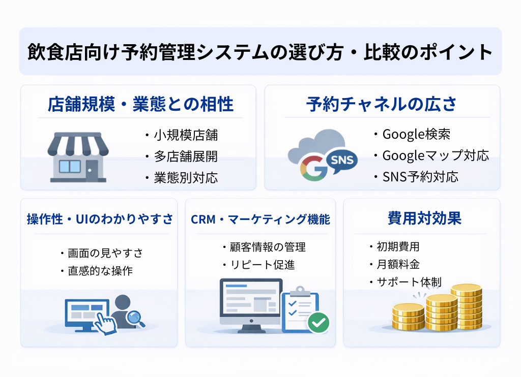 - 3 飲食店向け予約管理システムの選び方と比較のポイント