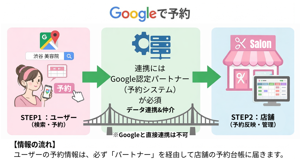 Googleで予約は、Google検索やGoogleマップ上でユーザーが直接予約できる仕組みを提供しています。