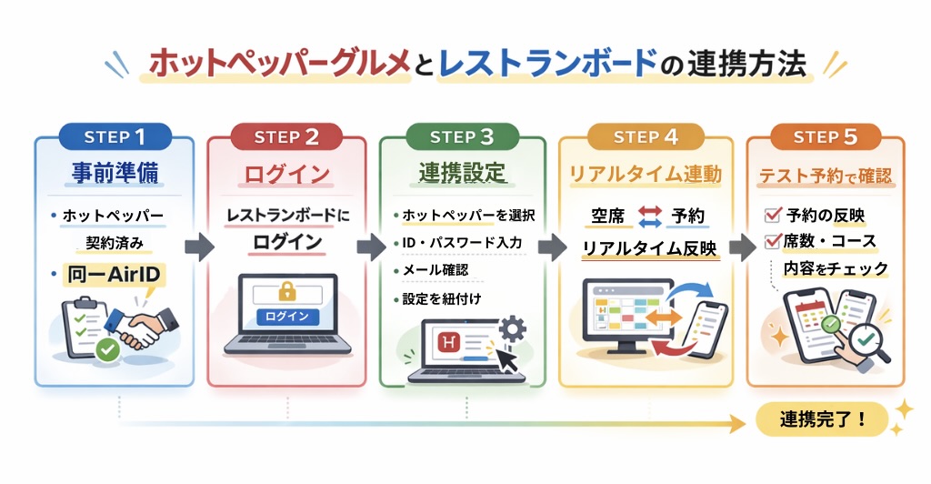 以下は、Airレジとレストランボードを連携する具体的なステップです。