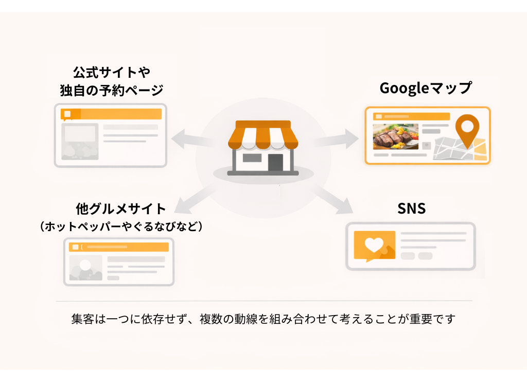 ここでは、食べログと併用すべき主要な集客導線を整理します。