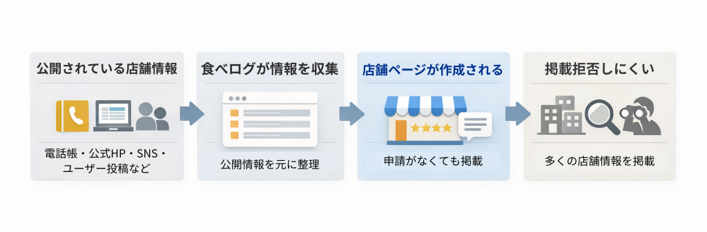 実は、食べログでは店舗側の希望だけで掲載を完全に拒否することはできません。